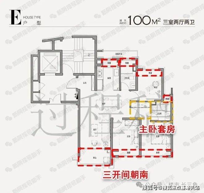 3、空间升级:超配双270°飘窗格局!市面上很少会有主卧及书房均设计270°飘窗的百平户型,稀缺性不言而喻~