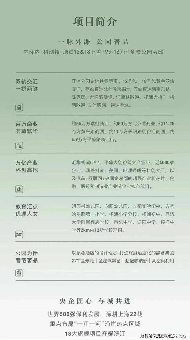 保利外滩启PARK77,是大连路总部集群、长阳创谷、杨浦滨江产业带这三大产业共同的芯,凭借极近距离和优越区位,成为三大产业区人才居住优选之地,也是项目未来价值保障。