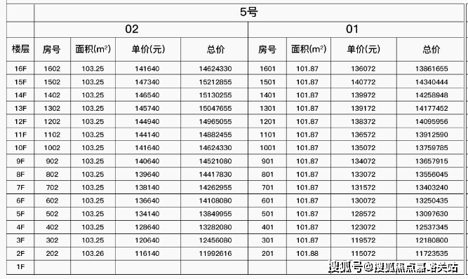 最新一房一价表: