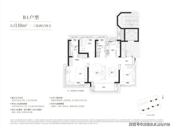 约110㎡三房的竖厅户型也毫不含糊,南向三开间全明空间光感充盈。飘窗能改造成阅读角或者咖啡吧,私密性拉满。 北次卧的飘窗灵活度高,床和书桌都能塞进去,小两口住还能当书房用;主卫的飘窗可以充分利用,放洗漱用品不占地 。