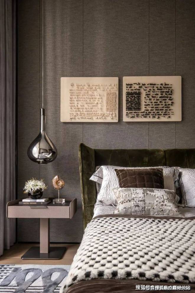 次卧的色调相对更为深邃,设计师通过不同的色彩选择,为静谧的氛围赋予了别样的诠释。有的空间明亮温暖,有的则内敛深沉,各种高品质材料相互搭配,编织出柔软而舒适的触感,再辅以恰到好处的艺术装饰,将空间的高级感提升到新的高度。