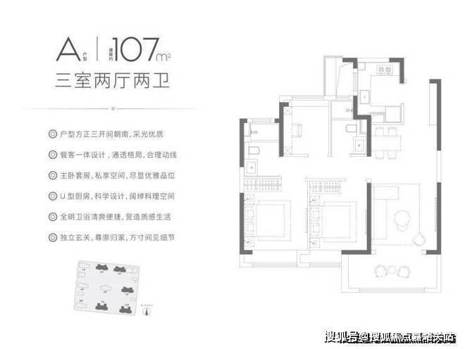 尤其是项目目前建面约107㎡的主力户型,更是集LDBK一体化、玄关入户、动静分区设计、U型厨房、双卧飘窗、强大收纳等多重优势于一体,在功能性与舒适度上几乎都做到了极致!