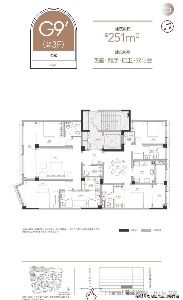 层高:别墅:1层3.6米;2&3层3.5米;4层4.5米,B1层6.9米; 公寓:3.15米