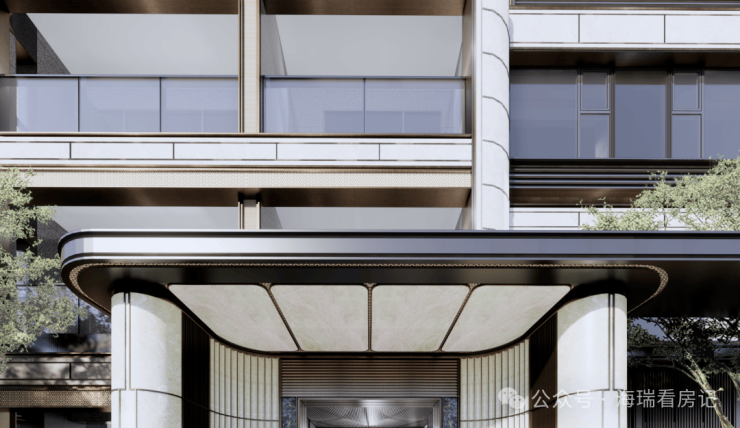 “臻”系,外立面灵活应用大面积LOW-E玻璃、质感金属线条、局部铝板搭配,不惜成本实现曲线条、转角弧面玻璃的美学元素效果。