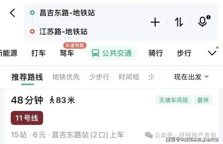 从昌吉东路出发,到江苏路、徐家汇纯地铁时间分别只要48分钟、52分钟。