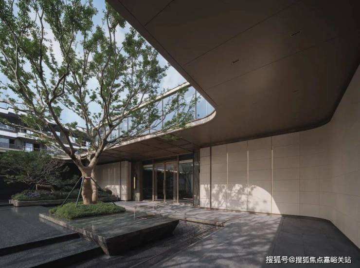 东方意境融于品质用材:石材迎宾、高品质植被、格栅意境