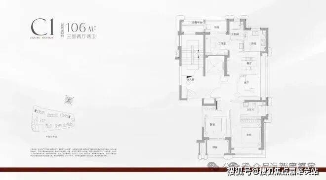 主力户型面积:建筑面积约106㎡三房两厅两卫