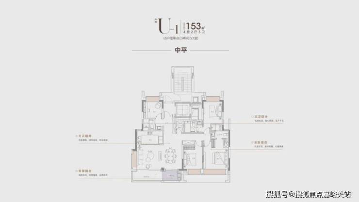 另外,4房4飘窗2阳台的设计,整个空间的尺度感、采光通透度都表现的非常出众。