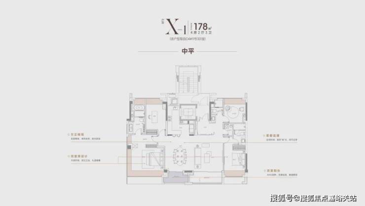 项目的中平四开间朝南,超大IMAX的采光面,妥妥市区豪宅大平层的尺度感。