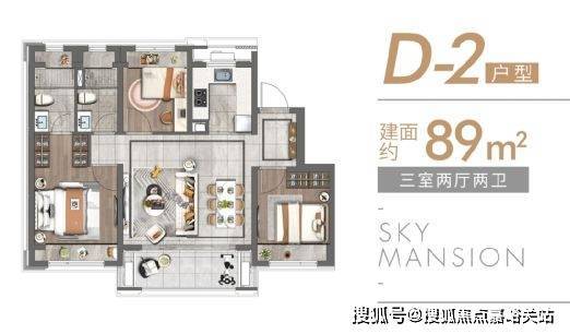 项目户型设计尤为惊艳,建面约89㎡3室2厅2卫,更是在市场上脱颖而出。