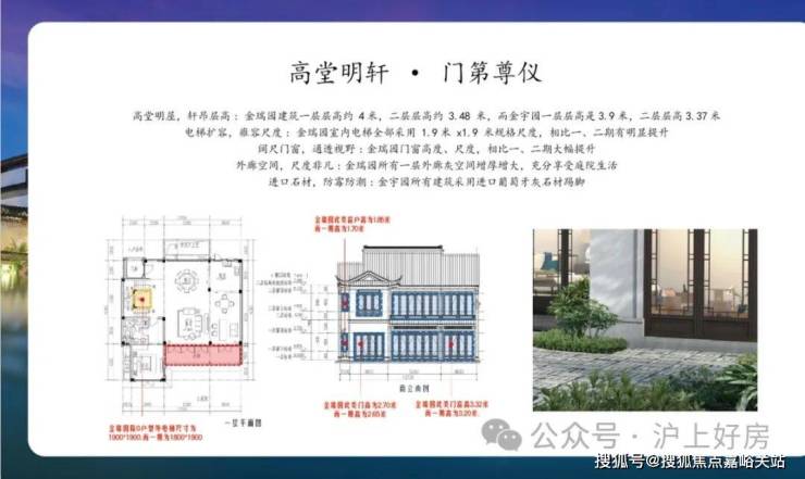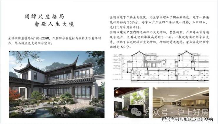 同时,建筑采用宋代宫殿,建筑出檐宽广,檐下增加斗拱、镂空雕花、甘蔗脊、阑额等元素,约2/3宅园设置入户连廊,为全国之最,雅贵造极。