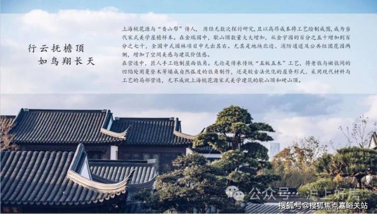 在建筑营造上,上海桃花源于明清建筑之上,融上海桃花源四期售楼处电话:400-8824-258【预约☎】√√入宋代建筑风格,出檐宽广,檐下增加斗拱、镂空雕花、甘蔗脊竖、阑额等元素,雅贵造极。同时约2/3宅园设置入户连廊,为全国之最。