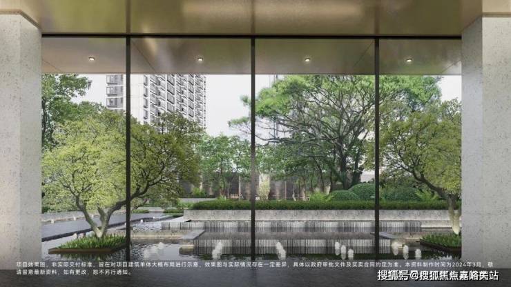 以精工迎宾大门设计,通过门头、水岸、花园等的组合,打造十字主轴的归家仪仗,形成极具品味的入户体验;并融入至臻工艺,从主入口、地库、公区、架空层打造专属的仪式感。