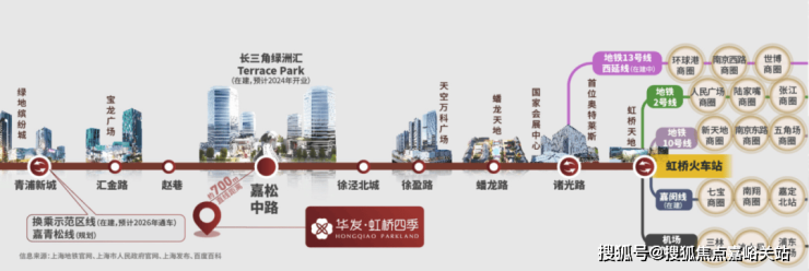 轨交方面, 华发虹桥四季步行约700米达17号线嘉松中路站,5站直达虹桥枢纽,可换乘2号线、10号线等6条轨交,快速通达静安寺、陆家嘴、市中心等核心板块;自驾方面,紧邻崧泽高架、沪青平公路,10分钟直达虹桥商务区,30分钟覆盖全城,日常通勤、商务出行高效便捷。