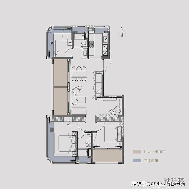 阳台+飘窗算下来,约108㎡户型的实得率达到了惊人的约87%,实得面积约94㎡!
