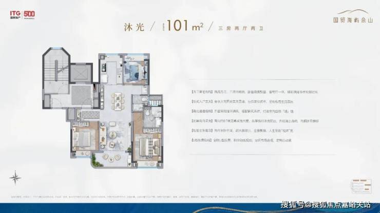 除了叠墅外,全社区仅4幢建面约101㎡沐光全景小高层,通过前瞻排布,几乎做到了户户景观无遮挡。