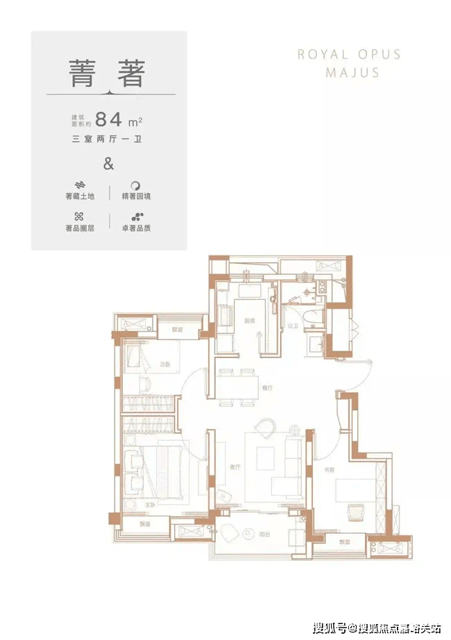 户型满足大面宽、短进深的要求,108、128平产品都做到四开间朝南。