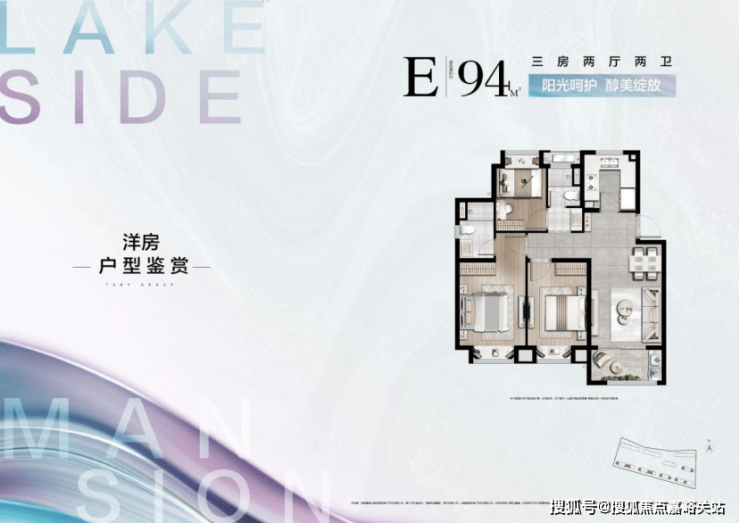 建面约94㎡三房两厅一卫