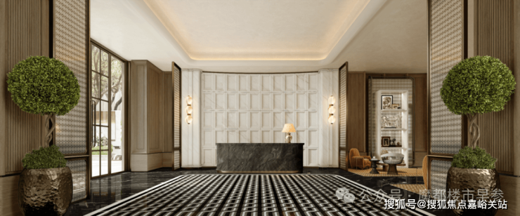 比如,挑高约 6米 的入户大堂、水系景观与艺术家共创作品交相辉映