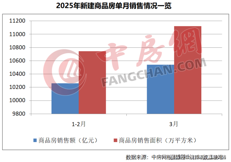 从单月情况看,新建商品房销售面积和销售额增速均实现正增长。根据中房网测算,3月份新建商品房销售面积为11123万平方米,环比上涨3.51%,同比下降1.56%;新建商品房销售额为10539亿元,环比上涨2.73%,同比下降 2.32%。