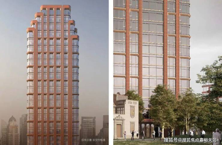 用Art Deco常用的竖向线条来解决高层建筑的挺拔感、用红色陶板来勾勒出海派老洋房的红砖意象。