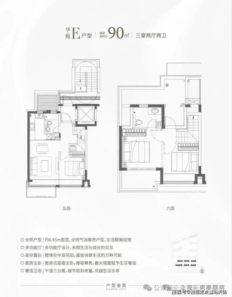 特别是这个 E户型,建面仅约90㎡,对于想住叠加但预算有限的购房者来说,面宽约6.45米,上下动静分离带,是个不错的选择!