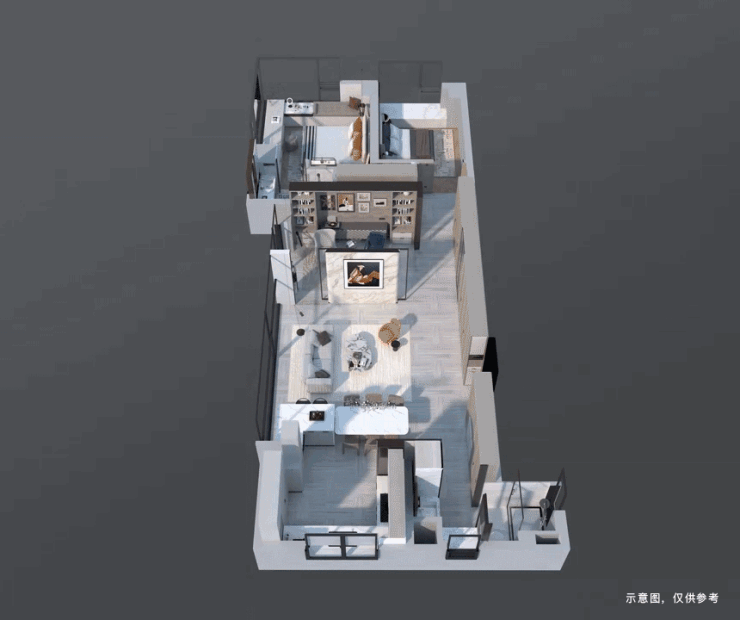 185㎡户型楼下核心景观效果示意图,仅供参考