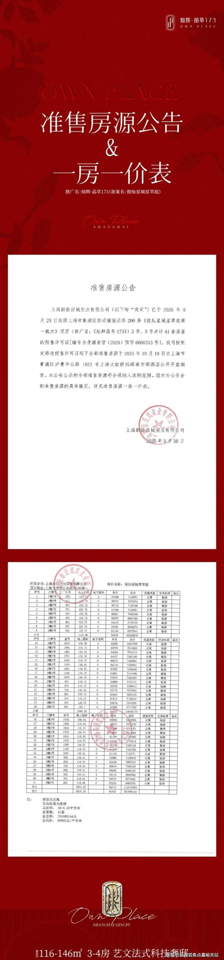 大虹桥徐泾 灿辉·晶萃173,推出建面约116-122㎡3房,均价60562元/㎡!