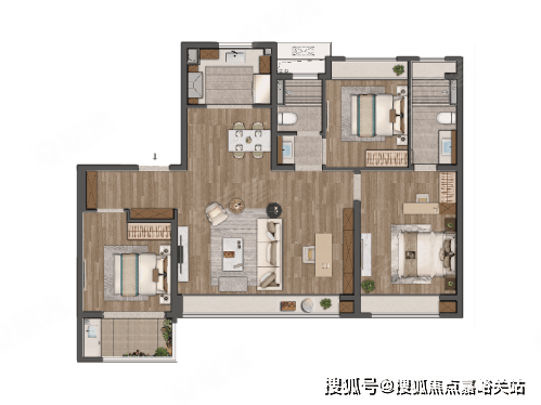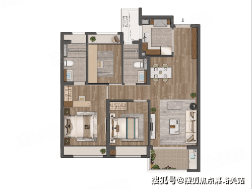 边套户型,三开间朝南,南北双阳台,主卧套房设计,改善入门优选