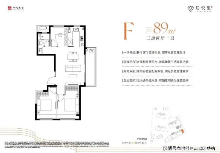 项目推出的 最小面积79平2房,适合人数较少的青年家庭;