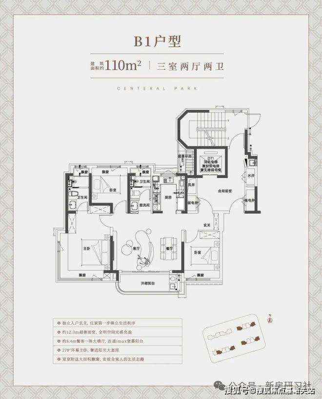 建面约110㎡中间套竖厅户型,同样也是标准的南北通透飞机户型,整体室内的采光、尺度感、通风都相当出色。中环铂樾售楼处预约电话☎:400-8266-670✅✅非常适合一家三口、年轻夫妻的全生命周期需求!