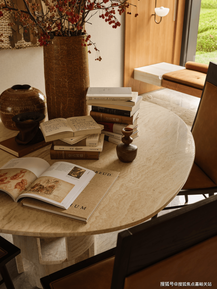 原木的温润,石材的沉稳,金属的精致交错排列,形成粗犷与精致的对比,共演回归本真的高阶生活美学。