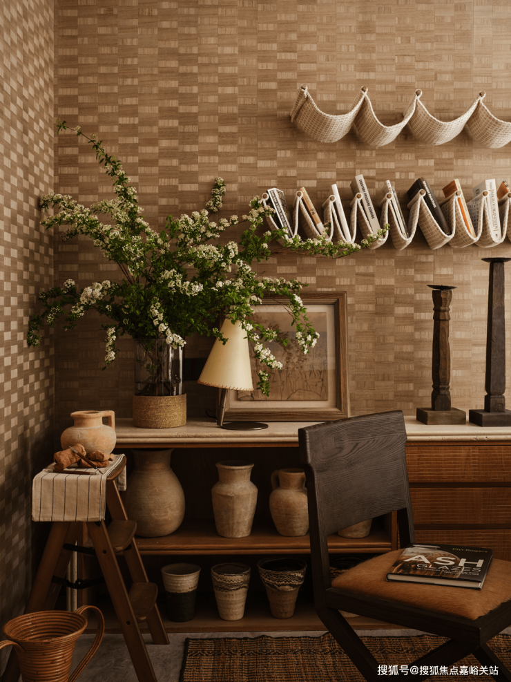 书籍的棱角在藤编纹理中软化,绿植的根系在哲学段落间蔓延,形成“根系与书脊共生的知识生态系统”。