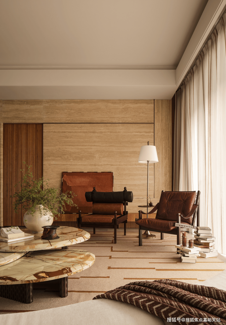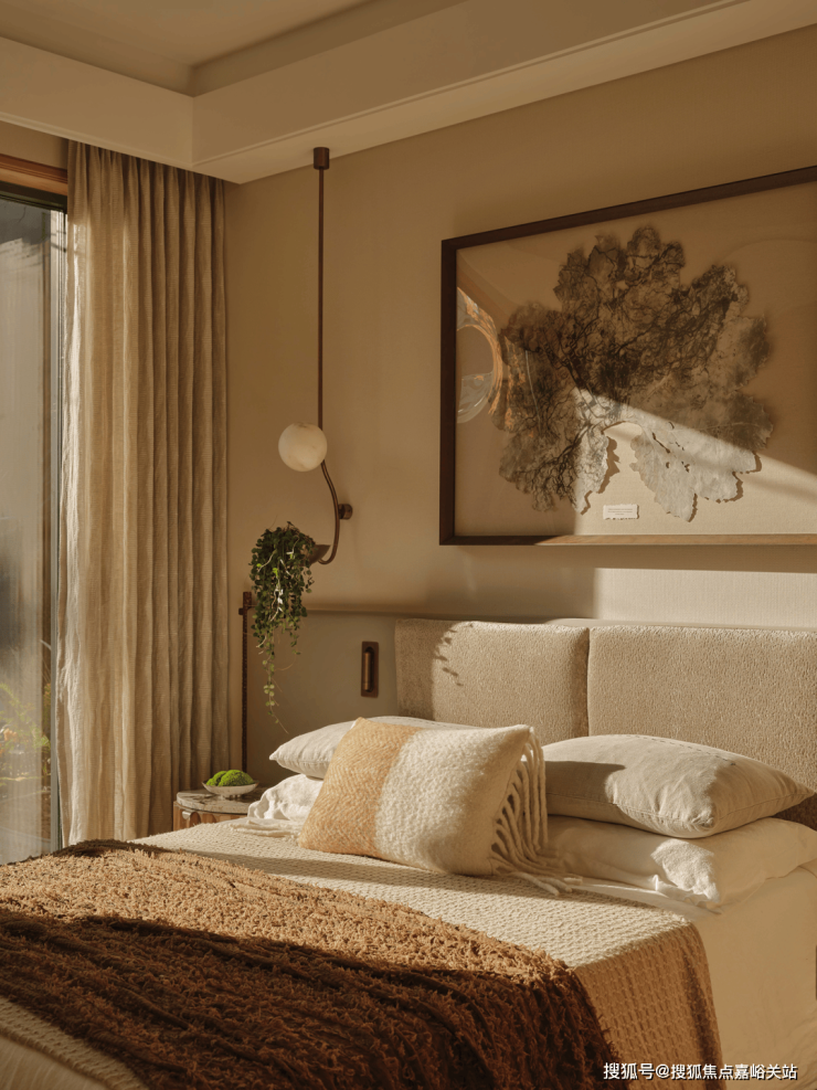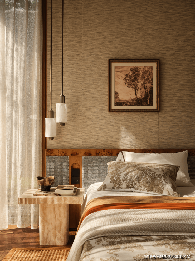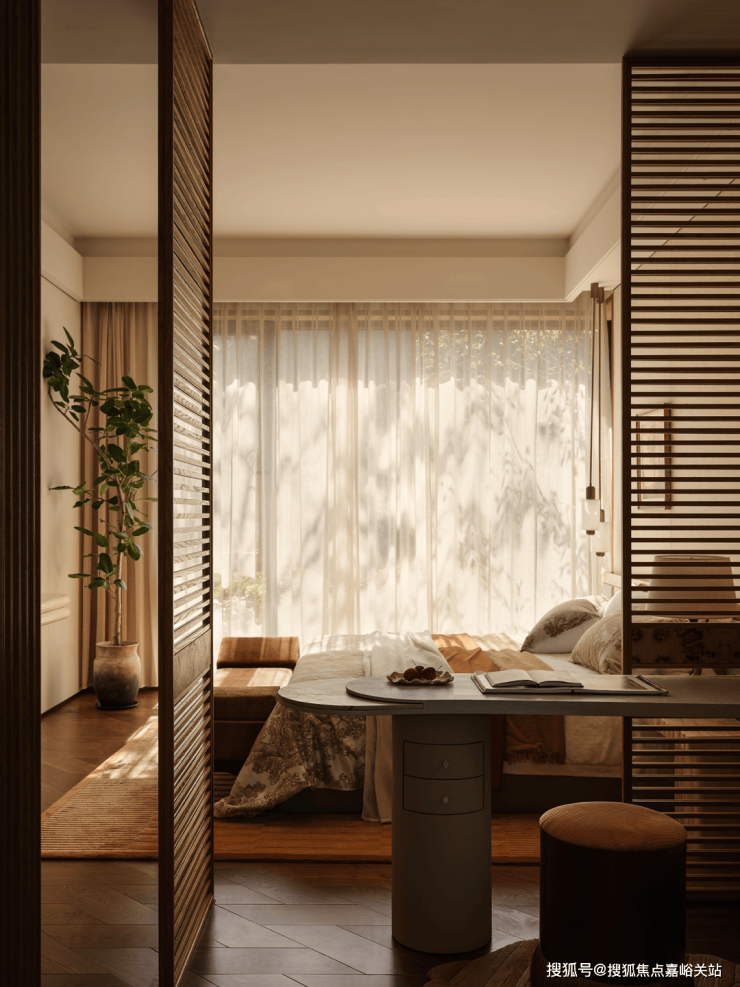 木纹的起伏、晨昏光线的渐变,纱帘随风轻摆的节奏,突破物理边界,用材质符号构建多维度的「精神透气孔」。以木质、棉麻、绿植为基底,用光影与留白编织出「自然生长」的设计叙事。