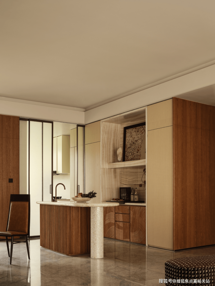 木质的温润对话大理石的永恒,让静谧的流光溶解于现代生活的棱角中,在理性的空间秩序与感性的美学平衡中,重构人与空间的诗意共生。