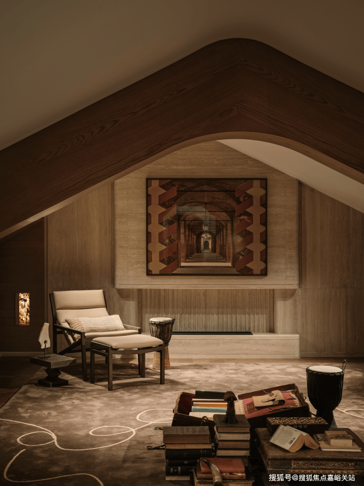 空间美学上推崇“舒适自然”,运用简单而内敛、柔和而深邃的色彩及纹理丰富的多元材质,为空间注入更多艺术意趣,诠释了“既承载物理的舒适尺度;亦成为精神的诗意栖居,于繁华城中沉淀生活本真”的双重生活维度。