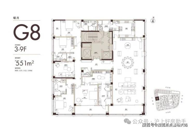 建面408㎡大平层 南向面宽26.8米,得房率89%