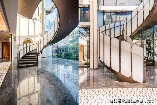 过去在豪宅项目才能看到的类似于“星空顶”地下车库坡道,招商臻境使用了看来更加高级的香槟金色吊顶,并加上穹顶闪耀的“追光”坡道!精装的地下大堂,配置了自然的采光井以及专属等候区,如同高级酒店的首层大堂,极尽礼宾仪式!精装地上大堂,地面的石材拼花造型,墙面的石材背景,将静奢海派的艺术展现的淋漓尽致!