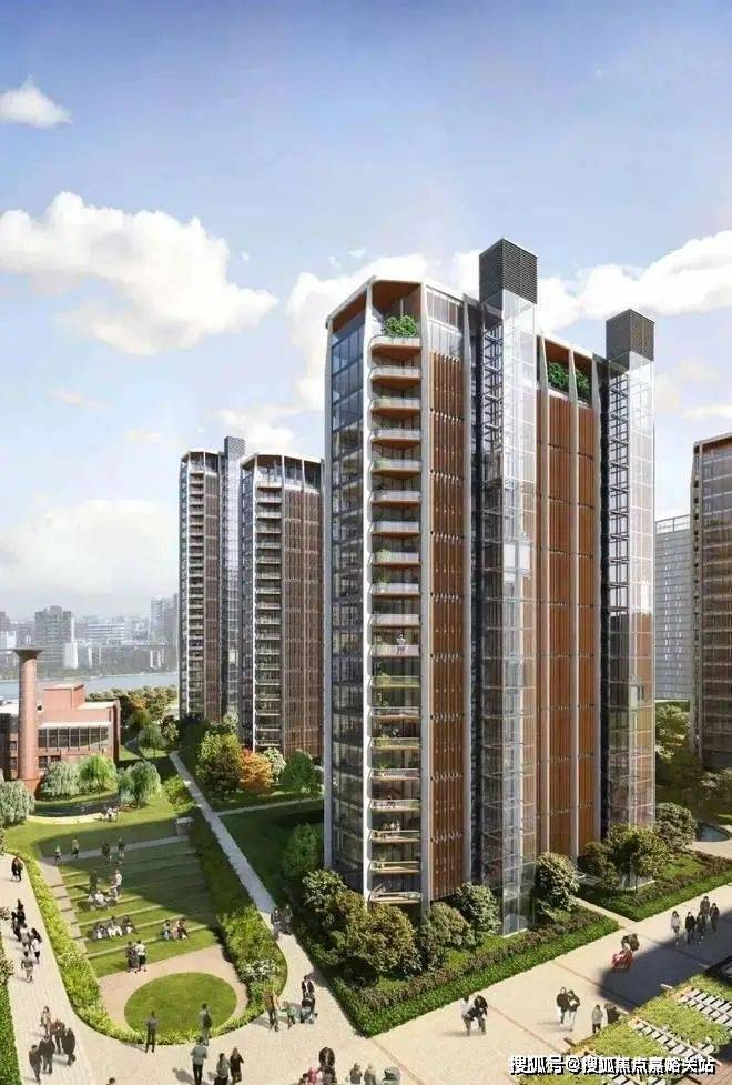 材质都是以大面积的玻璃为主,非常有利于充分采光,也能更好的欣赏江边风景。目前网上流传的项目设计草图确实不少,其中整个社区的绿化设计也是值得关注的: 除了项目整体的“滨江豪宅”的标签,社区内还强调了“公园”属性: