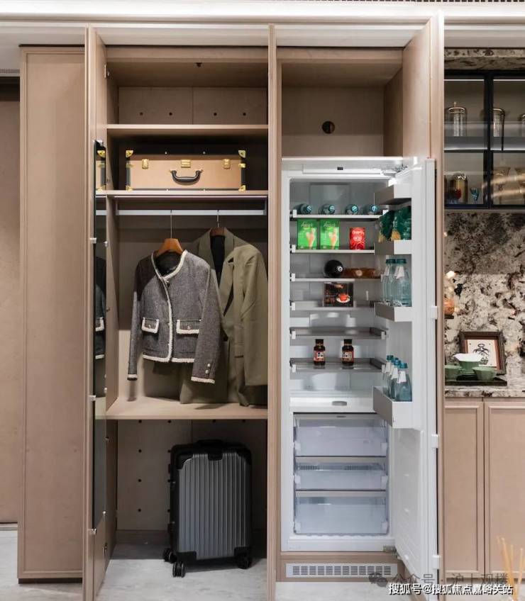 S墙嵌入双开门冰箱,一下子解放了餐厨空间。