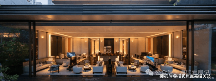 而实景首开的近2000㎡下沉庭院,作为“园林灵魂”,漫步此间,你会看见:乌金原石围合的“玉扣绿岛”上,低调静放着团队自“天下玉源”河南南阳历时遴选而来,近7000年的“国玉”独山璞玉,与山野林木共此氤氲灵气,尽显东方温润;从诗经走出来的近11m高参天乌桕,则再现古诗中所描述的“秋林城郭画图中,乌桕千株照眼红“的诗意;采用约6.7m幻影蓝奢石打造的“叠级水瀑”跌水台,池底以呈现天然墨绿色泽的蓝金刚石铺就,映水之澄明,境之悠远;连台阶都采用了“黑色花岗岩之王”安哥拉黑整石,沿云梯而上,让人返璞内心东方......