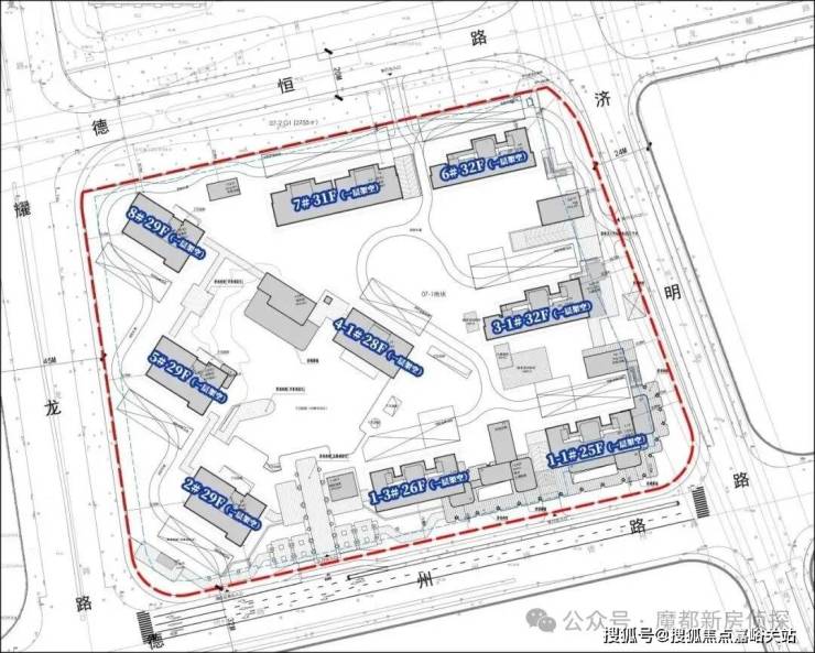 根据项目规划设计方案,07-01地块 拟建9幢超高层住宅,其中7幢百米高层住宅(28-32层)、1幢83米高住宅(25层)和1幢86米高住宅(26层),若干社区配套用房以及部分商业设施,共计规划约794户。建面120㎡以下中小套型占比要求不低于40%。