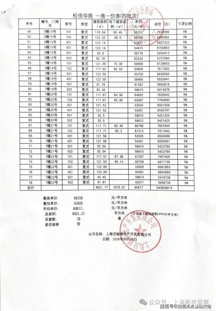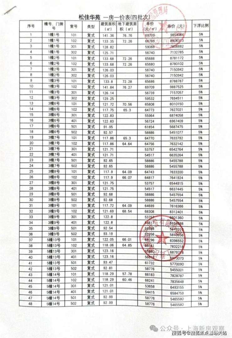 一房一价表如下