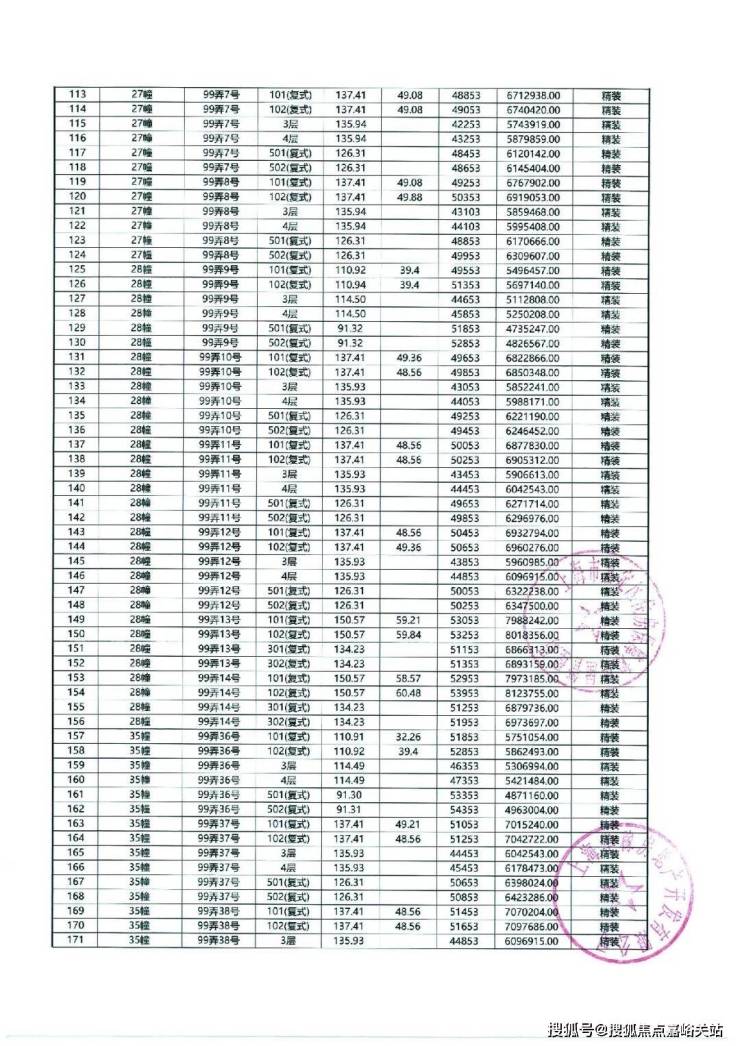 以下为项目最新一房一价表