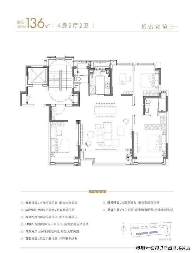 建面约136㎡6层洋房纯粹的亲地性和高得房率,既能满足三代同堂居住需求,也能保障私密性和居住体验感的提升;
