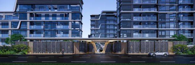 奢阔的社区入口,搭配蓝翡翠镜面奢石,为业主带来双重归家礼仪的同时,也为杨浦滨江增添了一处绝美的网红打卡地。