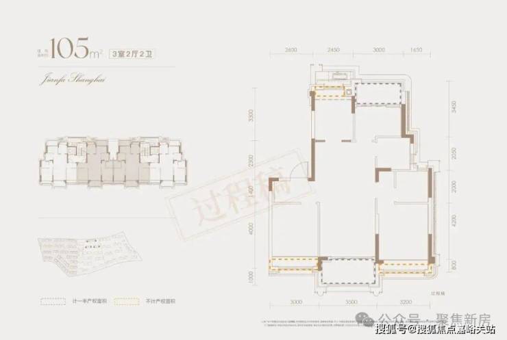 经过专业建筑师测算,该户型的客厅南向开间达到3.9米,入户门到公卫的距离足足5.35米。