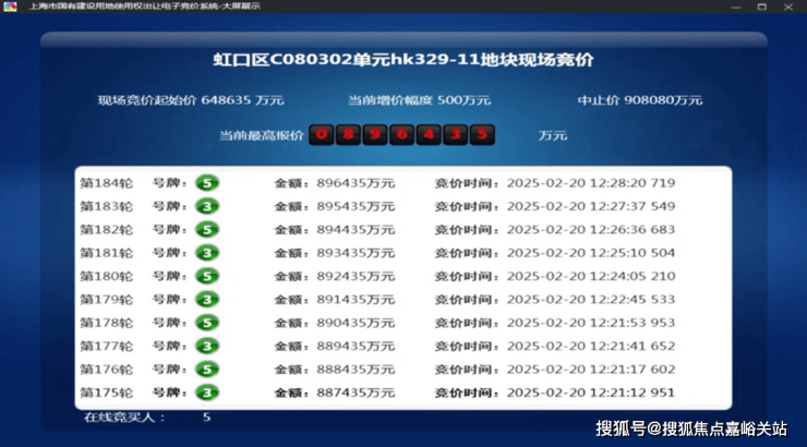 2025年2月,今年第一批次土拍中, 经过 184轮 竞价, 金茂&庆隆联合体 以总价896435万元竞得 虹口C080302单元hk329-11地块,溢价率38.2%,折合 楼板价117474元/㎡,装修标准不小于4000元/㎡。