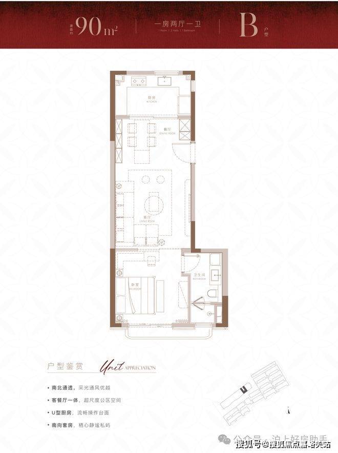建面约90m²尊享1房户型,在100m²的基础上,进一步降低总价门槛的同时,也带来了设计上针对实用性的小巧思。