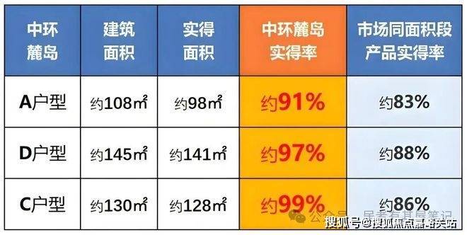 中环麓岛约108㎡实得约91%,约130㎡实得约99%,约145㎡实得约97%,部分大户型甚至突破100%! 相比市面普遍水平,提升约8%-10%!